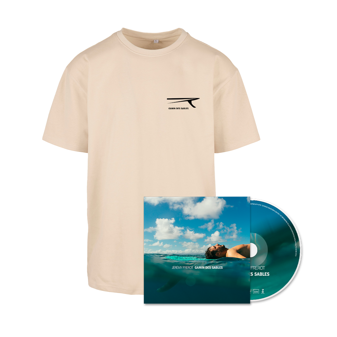 CD + Tee-shirt oversize brodé couleur Sable 100% coton
